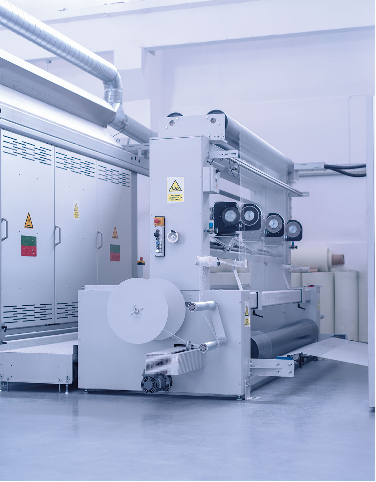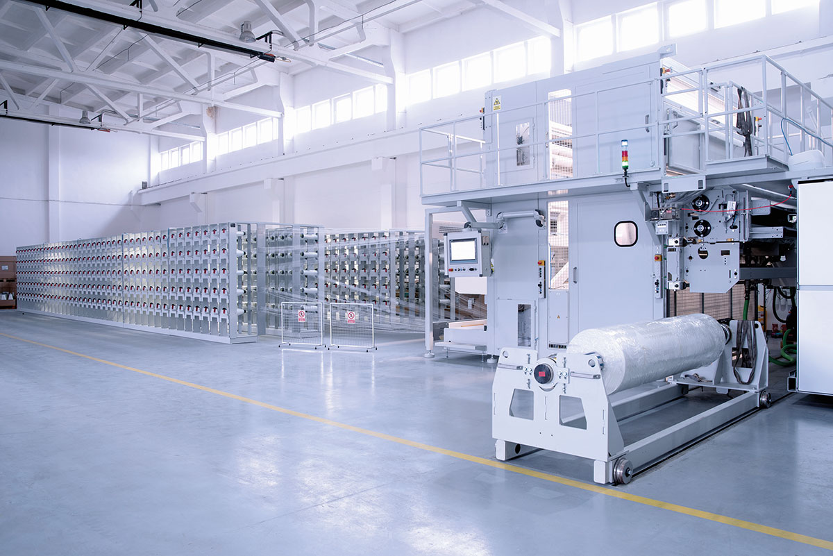 從紗線到布面涂層,烘干,以及材料貼合、裁切與卷取的全流程生產模式