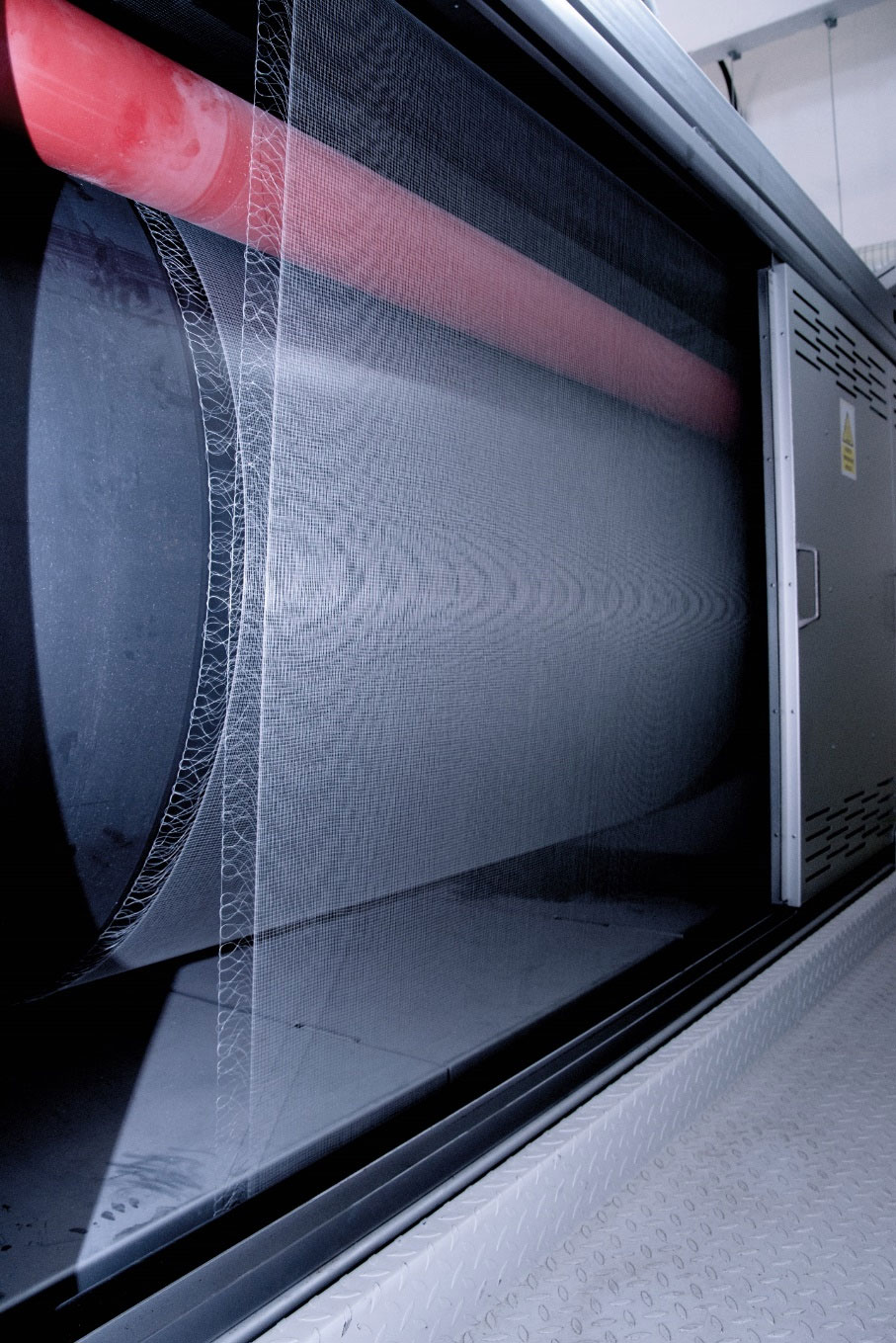 區別于傳統的編織技術,使用TURBOTEX生產的網格布由液體化學劑粘合紗線制成。