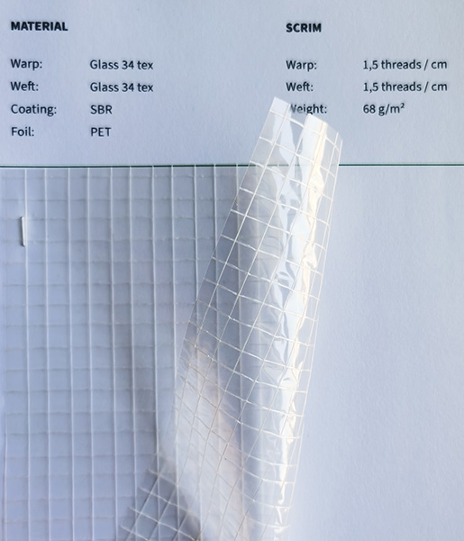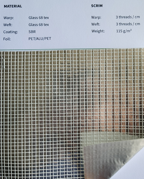 經紗Glass 68 tex 緯紗Glass 68 tex 涂層SBR 薄膜PET/ALU/PET |